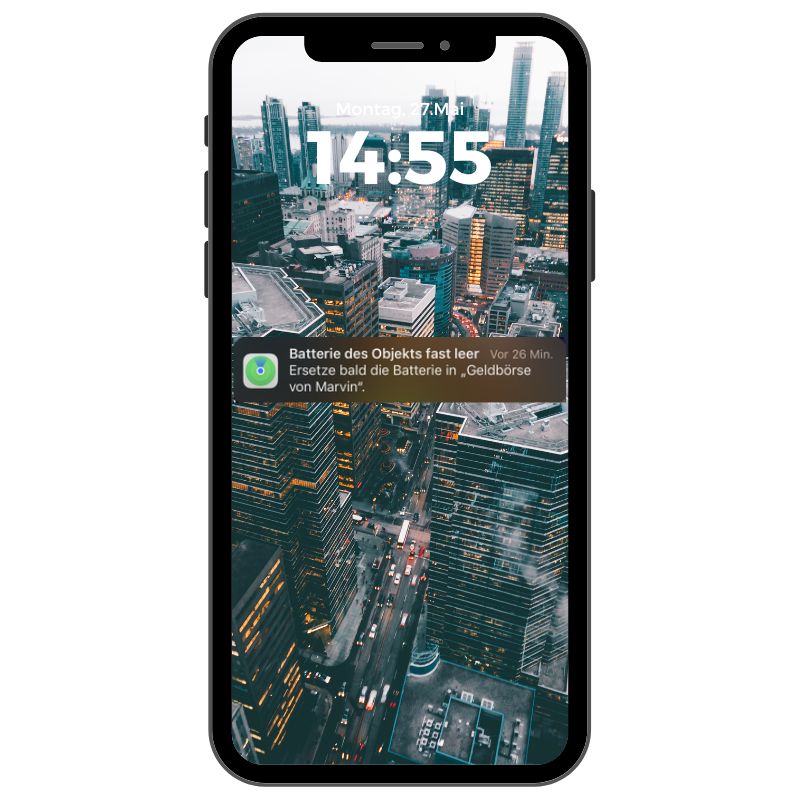 Mit der "Wo ist?"-App wirst du nach etwa 10 Monaten benachrichtigt, wenn die Batterie deiner Tracker-Karte fast leer ist. So kannst du rechtzeitig reagieren und sicherstellen, dass deine Karte immer bereit ist. Du kannst den aktuellen Akkustand auch jederzeit in der App einsehen.