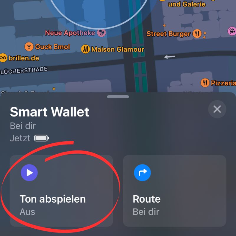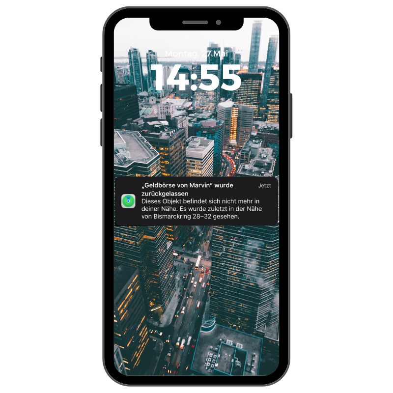 Du kannst in der "Wo ist?"-App eine Funktion aktivieren, die dich automatisch benachrichtigt, sobald du dich von deinem Objekt entfernst. So bleibst du stets informiert, falls du dein Portemonnaie vergessen oder irgendwo liegen gelassen hast.
