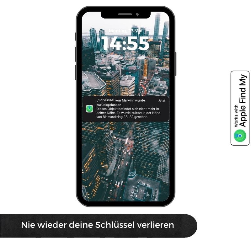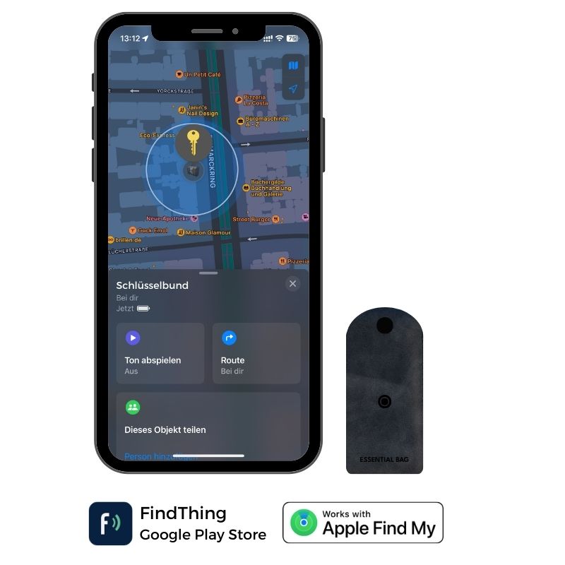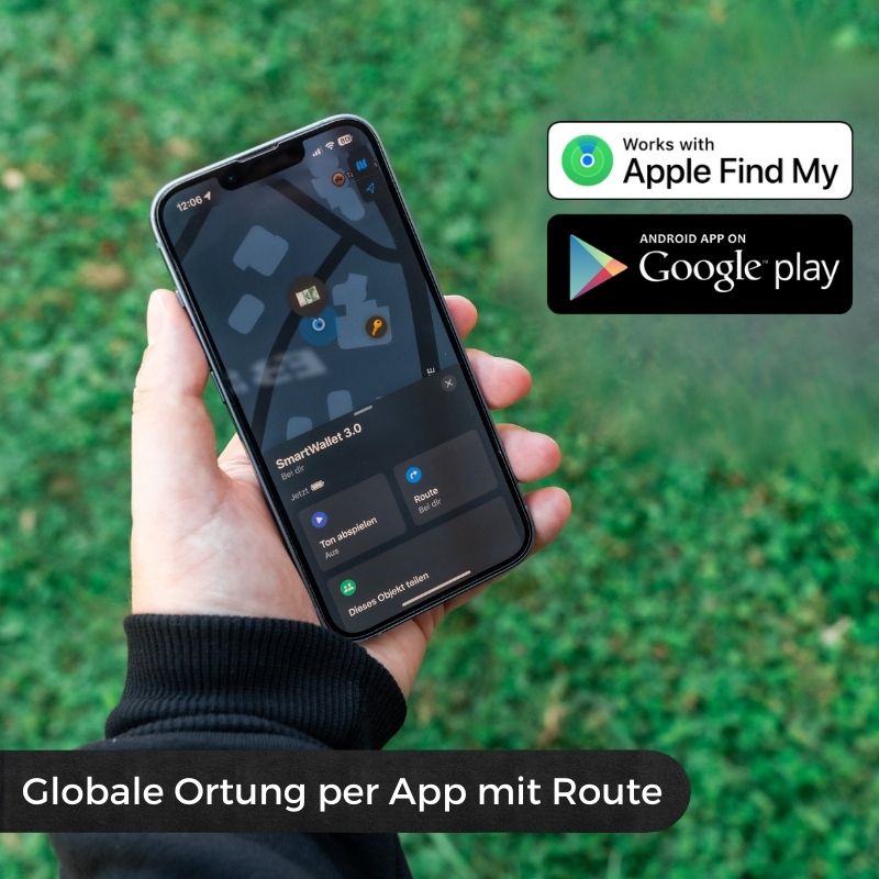 Die Ortung mit unserer Tracker-Karte nutzt sowohl das „Apple Find My“-Netzwerk als auch eine systemeigene Android-App, um eine breite und präzise Abdeckung für die Standortbestimmung deiner Wertsachen zu bieten.