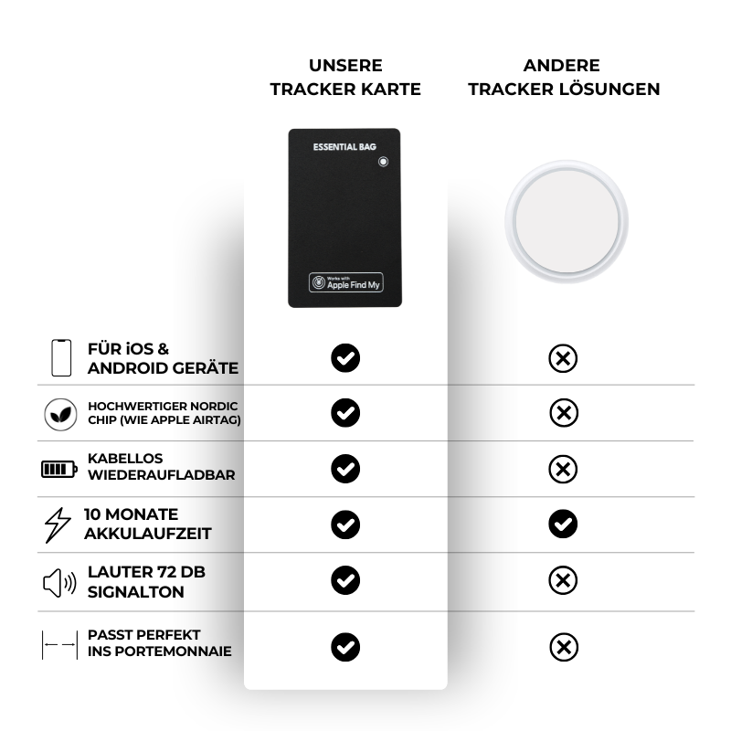 - Qualitativ hochwertiger Nordic-Chip aus Norwegen, wie beim Original Apple AirTag (kein billiger China-Chip wie bei anderen Herstellern)